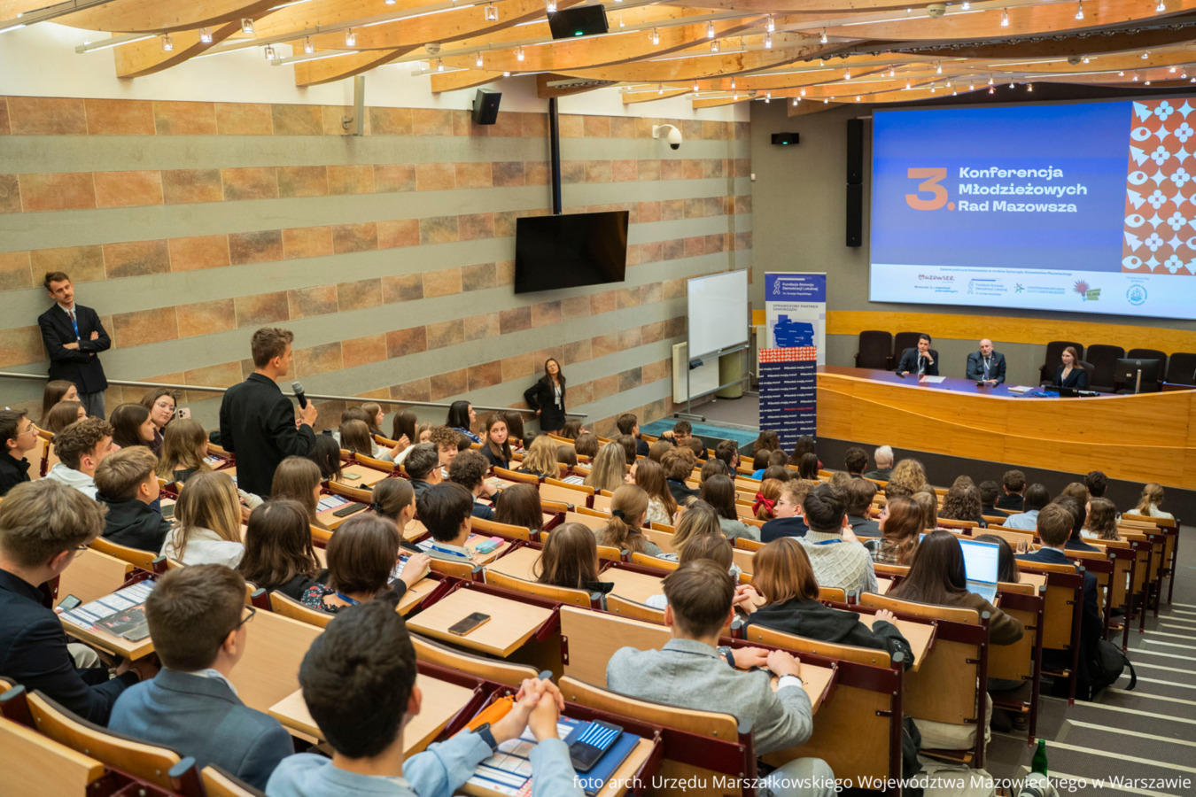 Ponad 150 uczestników, w tym 130 młodzieżowych radnych z całego Mazowsza oraz 15 prelegentów i prowadzących warsztaty – tak wyglądała III Konferencja Młodzieżowych Rad Mazowsza!