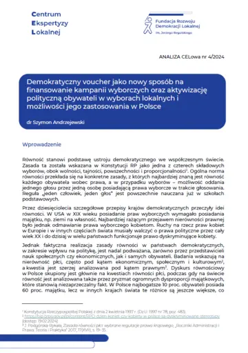 Demokratyczny voucher jako nowy sposób na finansowanie kampanii wyborczych oraz aktywizację polityczną obywateli w wyborach lokalnych i możliwości jego zastosowania w Polsce