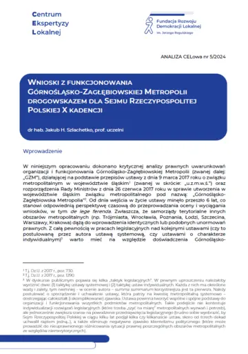 Wnioski z funkcjonowania Górnośląsko-Zagłębiowskiej Metropolii drogowskazem dla Sejmu Rzeczypospolitej Polskiej X kadencji