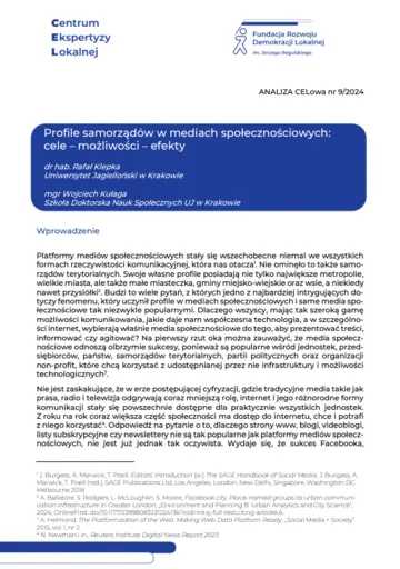 Profile samorządów w mediach społecznościowych: cele – możliwości – efekty