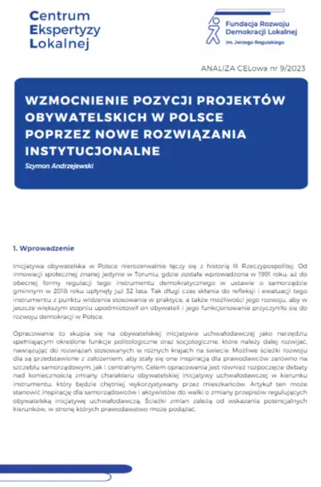WZMOCNIENIE POZYCJI PROJEKTÓW OBYWATELSKICH W POLSCE POPRZEZ NOWE ROZWIĄZANIA INSTYTUCJONALNE