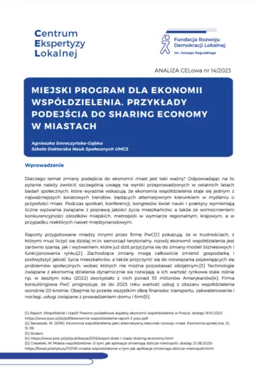 MIEJSKI PROGRAM DLA EKONOMII WSPÓŁDZIELENIA. PRZYKŁADY PODEJŚCIA DO SHARING ECONOMY W MIASTACH