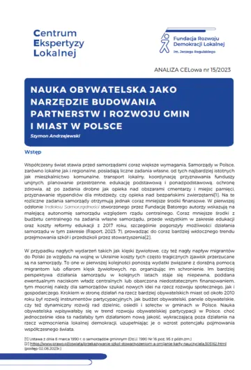 NAUKA OBYWATELSKA JAKO NARZĘDZIE BUDOWANIA PARTNERSTW I ROZWOJU GMIN I MIAST W POLSCE