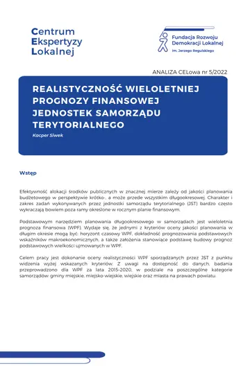 REALISTYCZNOŚĆ WIELOLETNIEJ PROGNOZY FINANSOWEJ JST