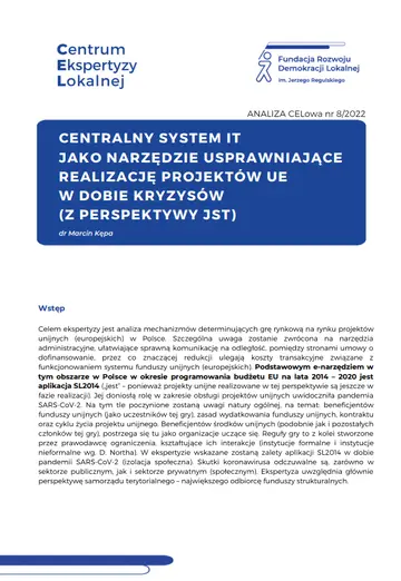 CENTARALNY SYSTEM IT JAKO NARZĘDZIE USPRAWNIAJĄCE REALIZACJĘ PROJEKTÓW UE