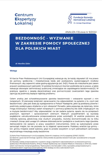 BEZDOMNOŚĆ - WYZWANIE W ZAKRESIE POMOCY SPOŁECZNEJ DLA POLSKICH MIAST
