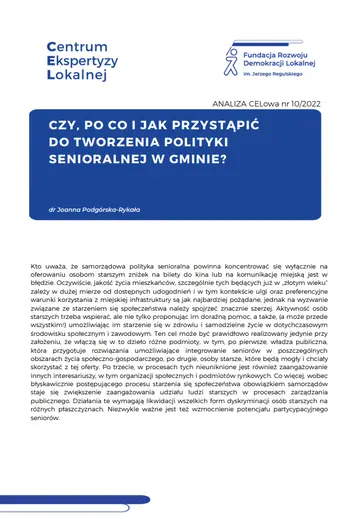 CZY, PO CO I JAK PRZYSTĄPIĆ DO TWORZENIA POLITYKI SENIORALNEJ W GMINIE?