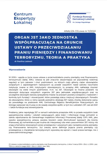 ORGAN JST JAKO JEDNOSTKA WSPÓŁPRACUJĄCA NA GRUNCIE USTAWY O PRZECIWDZIAŁANIU PRANIU PIENIĘDZY I FINANSOWANIU TERRORYZMU, TEORIA A PRAKTYKA