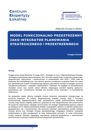MODEL FUNKCJONALNO-PRZESTRZENNY JAKO INTEGRATOR PLANOWANIA STRATEGICZNEGO I PRZESTRZENNEGO