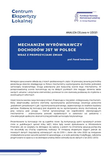Mechanizm wyrównawczy dochodów JST w Polsce wraz z propozycjami zmian