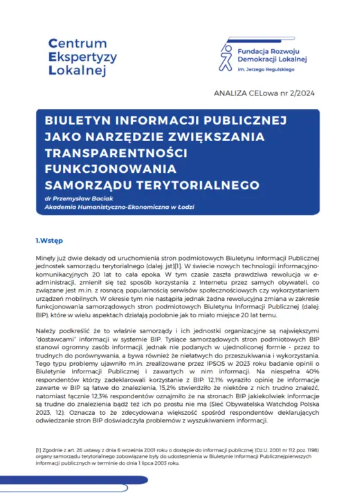 BIULETYN INFORMACJI PUBLICZNEJ JAKO NARZĘDZIE ZWIĘKSZANIA TRANSPARENTNOŚCI FUNKCJONOWANIA SAMORZĄDU