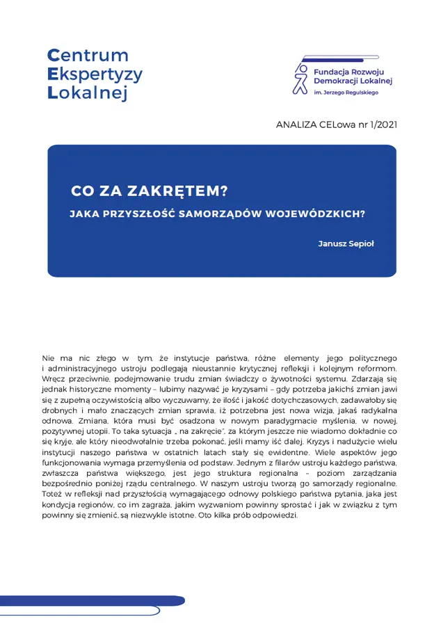 ANALIZA "CO ZA ZAKRĘTEM? JAKA PRZYSZŁOŚĆ SAMORZĄDÓW WOJEWÓDZKICH"