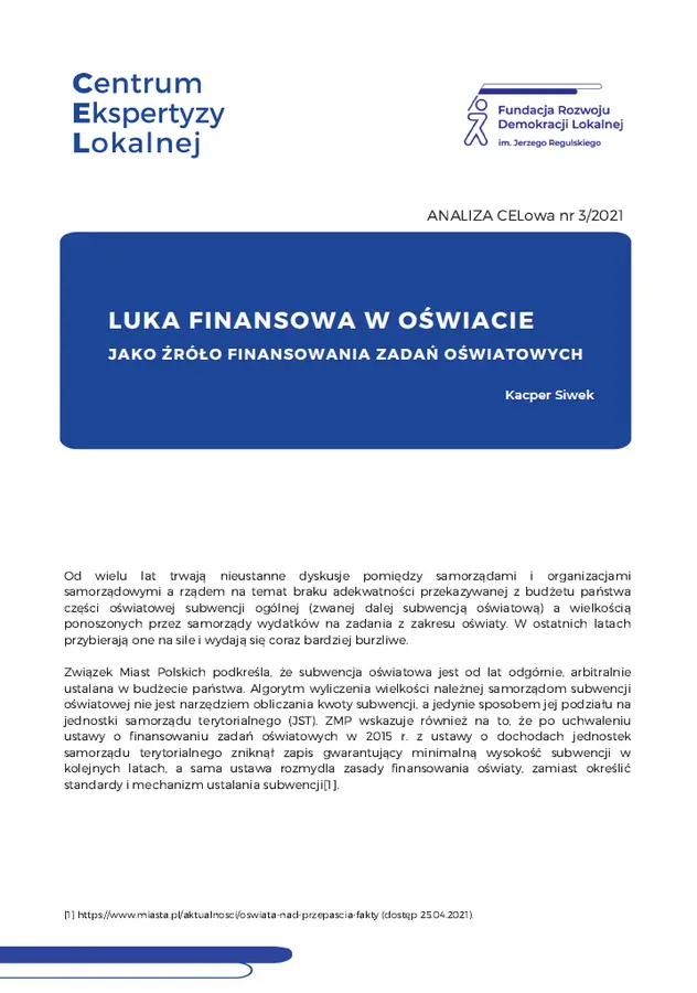 Luka finansowa w oświacie - dochody JST jako źródło finansowania zadań oświatowych