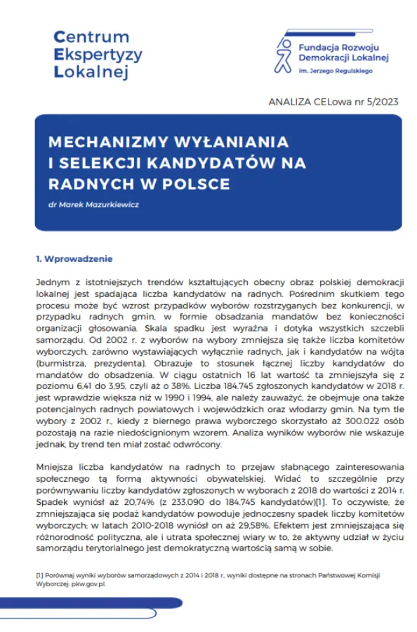 MECHANIZMY WYŁANIANIA I SELEKCJI KANDYDATÓW NA RADNYCH W POLSCE