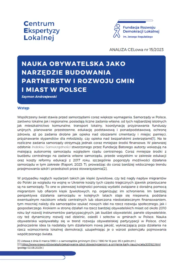 NAUKA OBYWATELSKA JAKO NARZĘDZIE BUDOWANIA PARTNERSTW I ROZWOJU GMIN I MIAST W POLSCE
