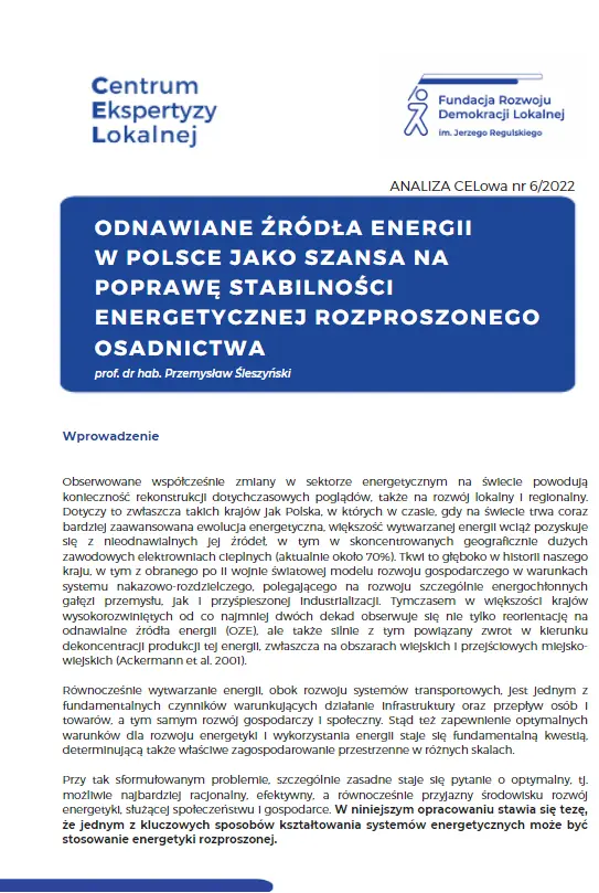 Obserwowane współcześnie zmiany w sektorze energetycznym na świecie powodują konieczność rekonstrukcji dotychczasowych poglądów, także na rozwój lokalny i regionalny. Dotyczy to zwłaszcza takich krajów jak Polska, w których w czasie, gdy na świecie trwa coraz bardziej zaawansowana ewolucja energetyczna, większość wytwarzanej energii wciąż pozyskuje się z nieodnawialnych jej źródeł, w tym w skoncentrowanych geograficznie dużych zawodowych elektrowniach cieplnych (aktualnie około 70%). Tkwi to głęboko w historii naszego kraju, w tym z obranego po II wojnie światowej modelu rozwoju gospodarczego w warunkach systemu nakazowo-rozdzielczego, polegającego na rozwoju szczególnie energochłonnych gałęzi przemysłu, jak i przyśpieszonej industrializacji. Tymczasem w większości krajów wysokorozwiniętych od co najmniej dwóch dekad obserwuje się nie tylko reorientację na odnawialne źródła energii (OZE), ale także silnie z tym powiązany zwrot w kierunku dekoncentracji produkcji tej energii, zwłaszcza na obszarach wiejskich i przejściowych miejsko-wiejskich. Więcej w analizie CELowej prof. dr hab. Przemysława Śleszyńskiego.