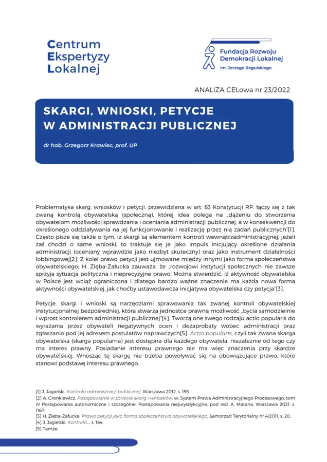 Petycje, skargi i wnioski są narzędziami sprawowania kontroli obywatelskiej. Są to instrumenty o uniwersalnym znaczeniu, skutecznie angażujące społeczeństwo w podejmowanie działań na rzecz dobra wspólnego.