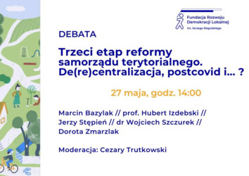 Wspomniana publikacja była punktem wyjścia do szczegółowej debaty, która odbyła się w formule on-line 27 maja 2021 r., w Dzień Samorządu Terytorialnego i była transmitowana na Facebooku FRDL.