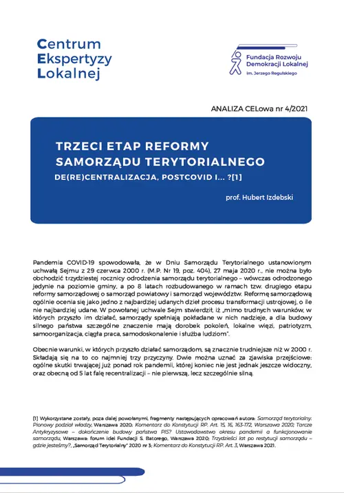 Trzeci etap reformy samorządu terytorialnego de(re)centralizacja, postcovid i... ?
