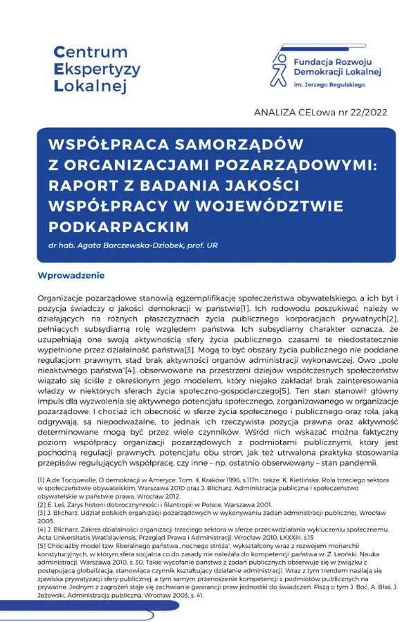 WSPÓŁPRACA SAMORZĄDÓW Z NGO. RAPORT Z BADANIA JAKOŚCI WSPÓŁPRACY W WOJ. PODKARPACKIM