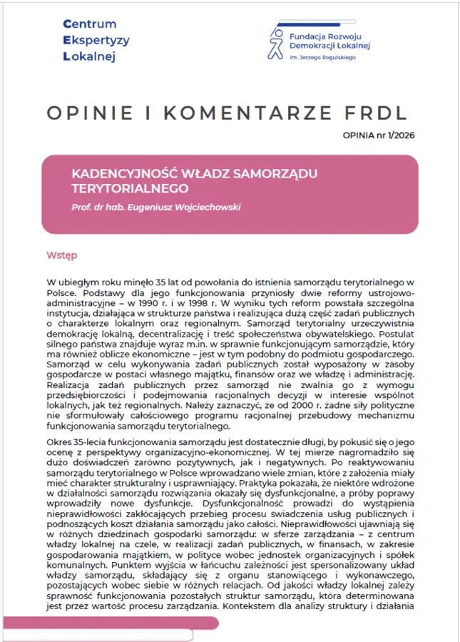 Opracowanie zawiera analizę funkcjonowania władz samorządu gminnego w kontekście ograniczenia kadencyjności organu wykonawczego oraz czasu trwania kadencji. Jako przesłankę uwzględniono wzajemne relacje między organem stanowiącym a wykonawczym w gminie. Z praktycznego punktu widzenia podjęty problem jest aktualny i istotny. W opracowaniu przedstawiono pewne rozwiązania, które – choć mogą być dyskusyjne – proponują zniwelowanie określonych dysfunkcji w samorządzie.